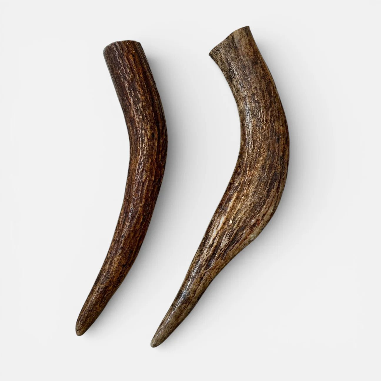 Moose antlers are denser and less brittle than deer or elk, which allows for slower, more controlled wear. They also contain more marrow, keeping dogs engaged longer while reducing the chance of splintering when properly sized. For heavy chewers, this typically means fewer replacements over time.