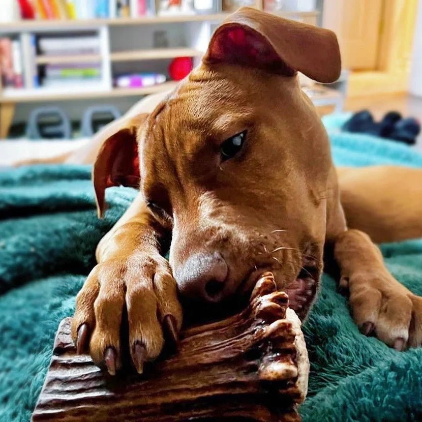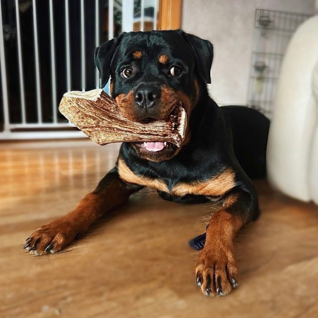 Moose antlers are denser and less brittle than deer or elk, which allows for slower, more controlled wear. They also contain more marrow, keeping dogs engaged longer while reducing the chance of splintering when properly sized. For heavy chewers, this typically means fewer replacements over time.