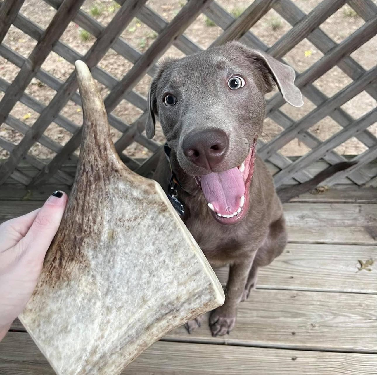 Antlers are a natural chew, so they wear down over time. Fresh, dense antlers like ours are designed to wear gradually rather than splinter. We hand cut and sand every antler to reduce sharp edges and weak points, and we always recommend proper sizing and supervised chewing.