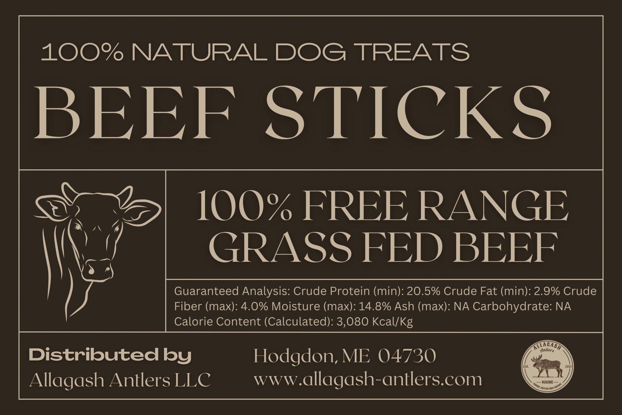 Our 6”  beef sticks are made from 100% natural free range, grass fed beef. Making them a great source of lean protein, which promotes strong muscles & healthy coat!