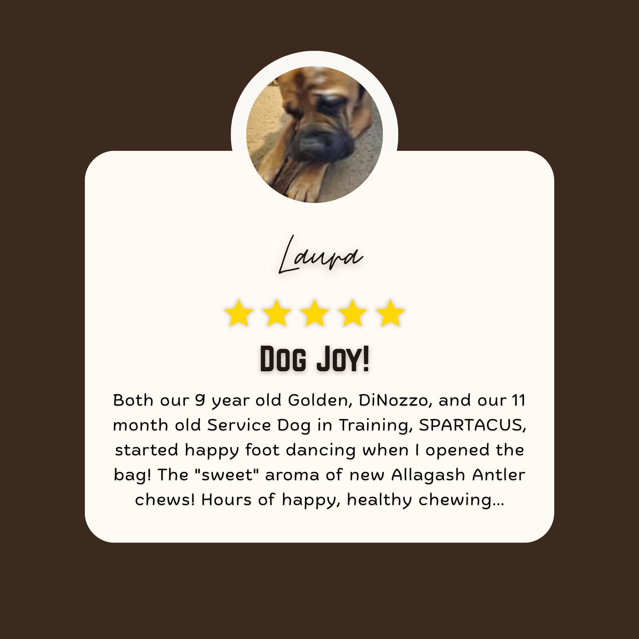 That hands on experience set the standard. Every antler is hand selected, cut, and sanded to meet the same durability and safety expectations we have for our own dogs.